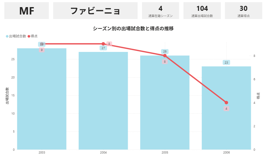 在籍シーズン | 9シーズン(2006-2010, 2012, 2017-2019) |