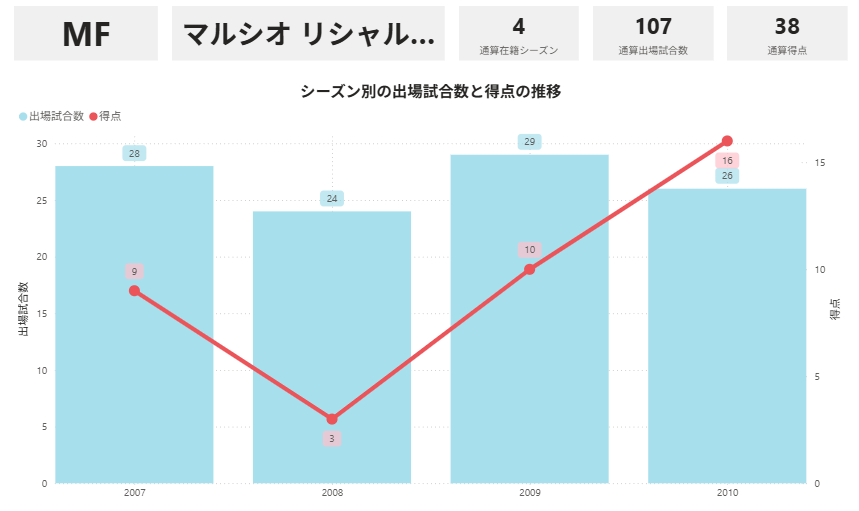 個人的にマルシオのゴールで印象に残っているのはこのゴール。内田潤のクロスもピカイチですが、後方からのボールをダイレクトで決めきるこのセンスですよ。