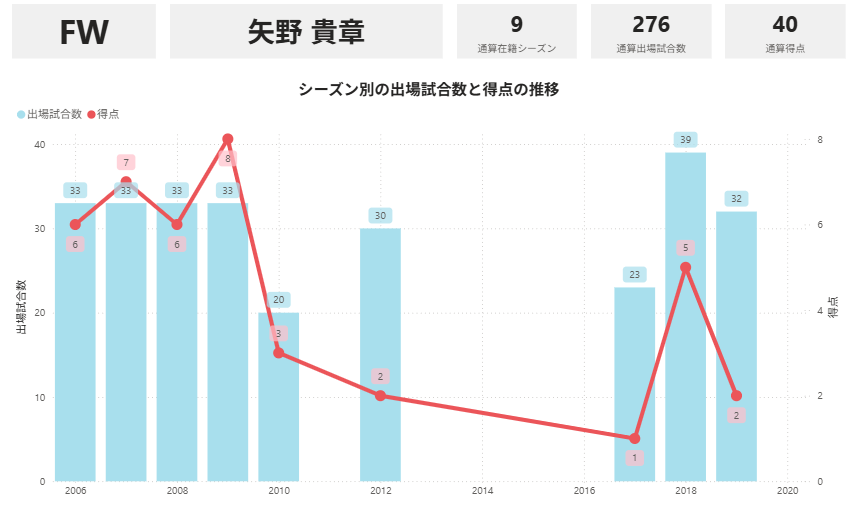 2019年に当時J2の新潟に加入。1シーズンのみの活躍でしたが、38試合28ゴールで、その年のJ2得点王を獲得。強烈なインパクトを残しました。